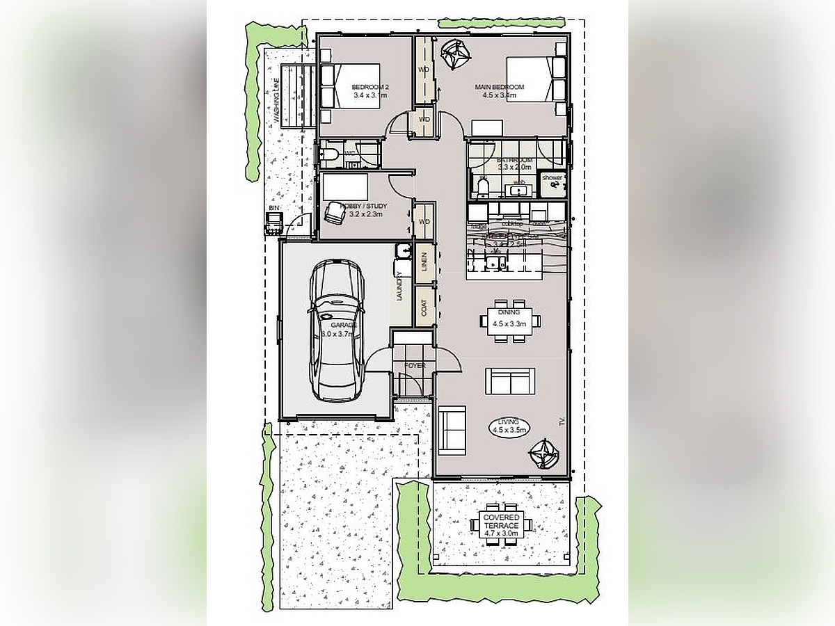 The Mirabelle is a beautifully crafted 130 sqm home designed for both comfort and elegance. It features two spacious bedrooms, a dedicated study, and a modern kitchen that blends form and function. A central bathroom is accessible from two points, complemented by an additional guest toilet for convenience.